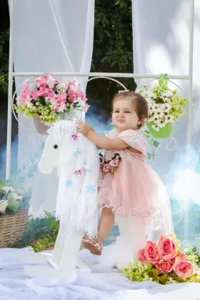 Nosso serviço de acompanhamento do bebê é cuidadosamente planejado para capturar as fases mais importantes: desde os primeiros sorrisos, a capacidade de sentar sem apoio, os primeiros dentinhos, até o momento mágico de engatinhar. A cada sessão, criamos um ambiente seguro, lúdico e confortável, com cenários temáticos e acessórios que tornam a experiência divertida e única.